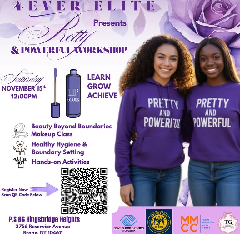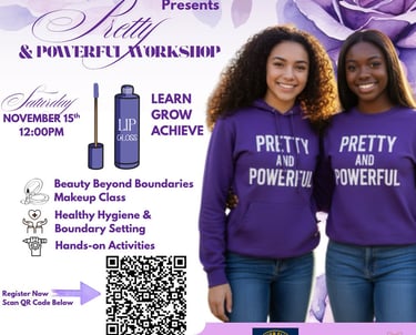 The workshop features confidence-boosting makeup demonstrations, an engaging conversation and activity on setting boundaries, lunch, and additional interactive experiences.